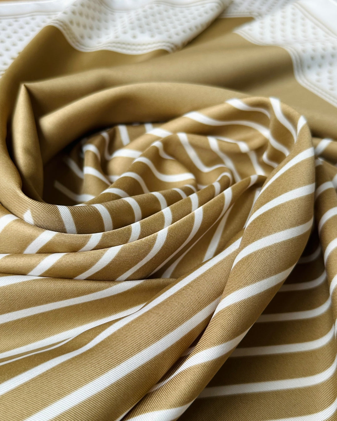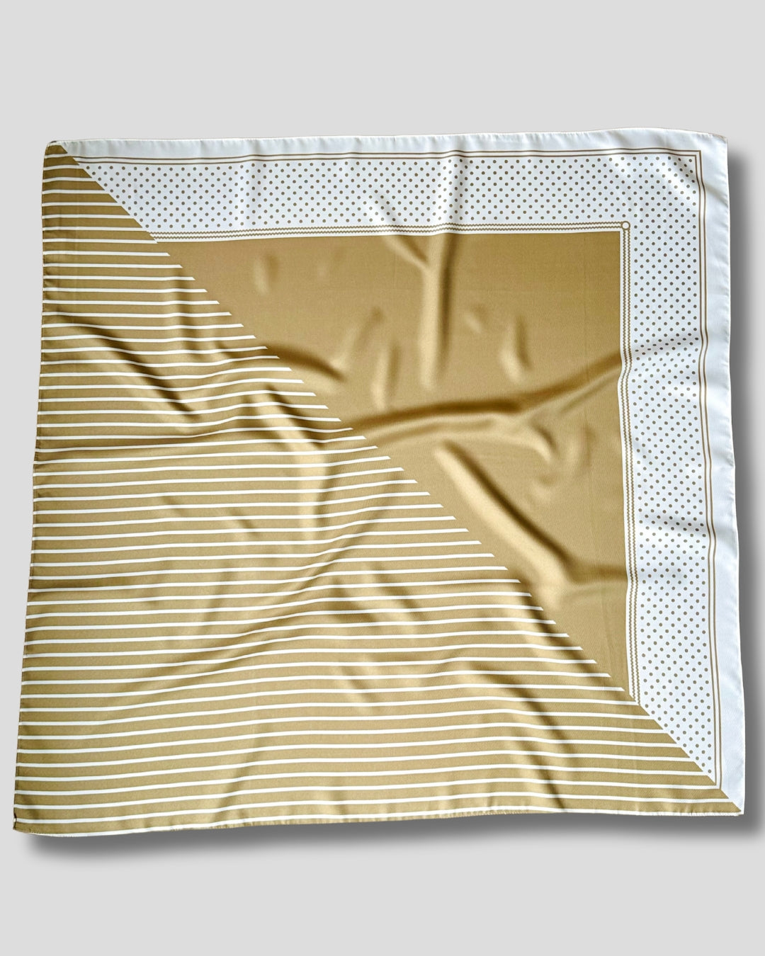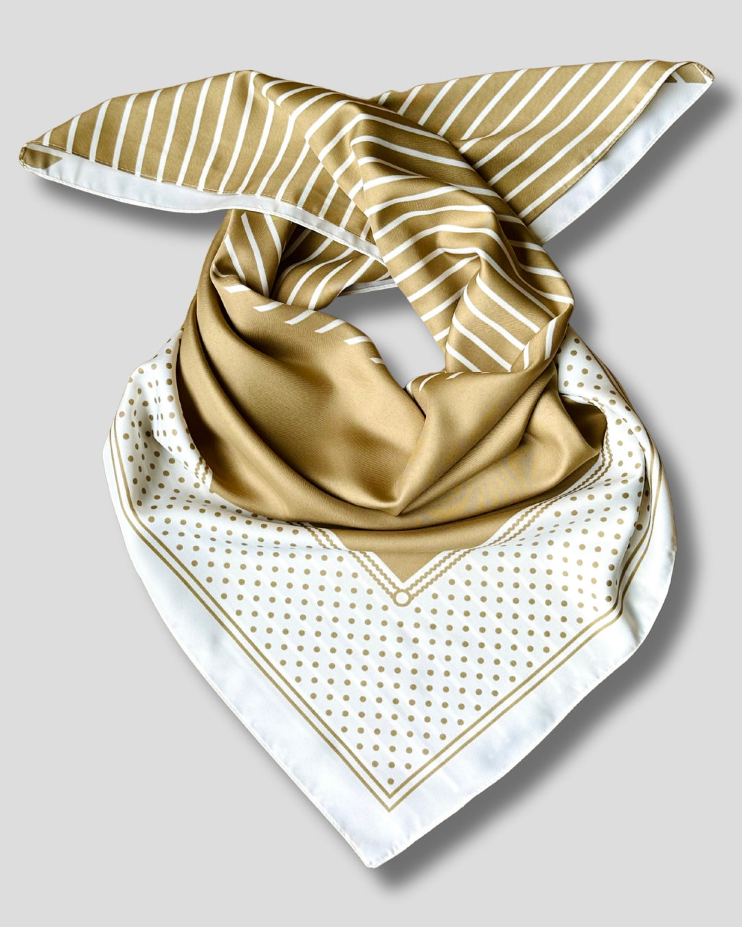 DIDELĖ KVADRATINĖ JUOSTELĖ IR TAŠKUOTAS ŠALIKAS | SMĖLIO, RUDOS, BALTOS SPALVOS | 90X90 CM